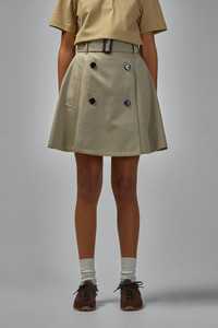 Mini skirt in khaki cotton-twill with a high belted waist. Double-breasted button front, slanted welt pockets and flared A-line hem. Materials: 100% Cotton Color: quill beige SKU: 153011 Brand style: 81160061.0 Size and Fit The model is 1.76m (5.8ft) and wears a size 6. The item fits as expected according to standard sizing. Order your usual size.