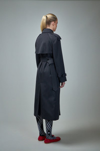 - inspired by our heritage styles, a trench coat in Italian-woven wool twill. - the design is tailored to a relaxed fit with exaggerated epaulettes and raglan sleeves. - double-breasted button closureHook-and-eye collar closure Throat latch EpaulettesB buckle belt - side welt pocketsBelted cuffsBack vent Comes with a garment bag Materials: 100% viscose Color: grey melange Made in Italy SKU: 146881 Brand style: 8095644 Size and Fit The model is 1.80m (5.9ft) and wears a size 6