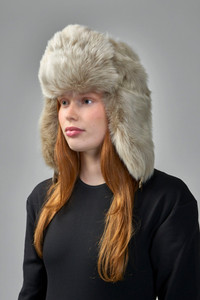 Hat in soft long-pile fur with a rounded, low-profile silhouette. The piece is beige-tan in tone and shows a leather rear strap with a metal buckle and two snap studs. Materials: 100% Real Farmed Dyed Lamb Shearling Color: linden brown SKU: 153016 Brand style: 81146661