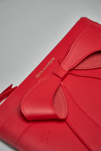 - zip closure - small logo detailing - bow at front - 22 x 17 cm Materials: 100% leather Color: red SKU: 150388 Brand style: SA5100BB