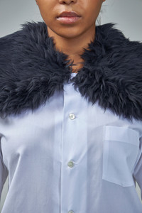 This Comme des Garcons timeless blouse for ladies features a soft shearling collar, a button closure, a conveniently-placed chest pocket, and adjustable buttoned cuffs, perfectly combining practicality and style. Ideal for layering and just the right balance of comfort and warmth. Materials: 100% cotton Color: white black Made in Japan SKU: 144544 Brand style: GL-B011-W23 Size and Fit Naomi wears size M. Naomi is 1.75m and a size Medium in tops, a size 36 in bottoms, and a size 28 in denim.