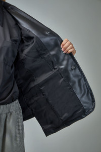 - collar - button closure - pockets Materials: 56% nylon, 44% polyester Color: black Made in Japan SKU: 147755 Brand style: GN-J021-051 Size and Fit The model is 1.77m (5.9ft) and wears a size M