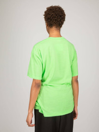 The Comme des Garçons T-Shirt is a modern take on the classic T-Shirt. It has a asymmetrical shape. Details SKU: 132988 Brand style ID: GI-T004-S22 Made in Japan Material: 50% Polyester, 50% Cotton Size and Fit Zoë wears a size S. Zoë is 172 and a size Extra Small in tops, a size 34 in bottoms, and a size 26 in denim.