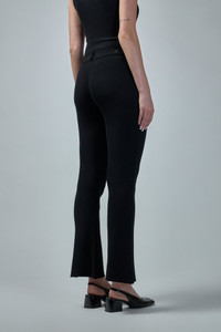 Trousers in black ribbed knit with a high waist and slight flare. It features two rectangular front patch pockets, belt loops and a cropped ankle length. Materials: 70% Viscose, 30% Polyester Color: 9999 SKU: 152347 Brand style: 325MPA428FI0001