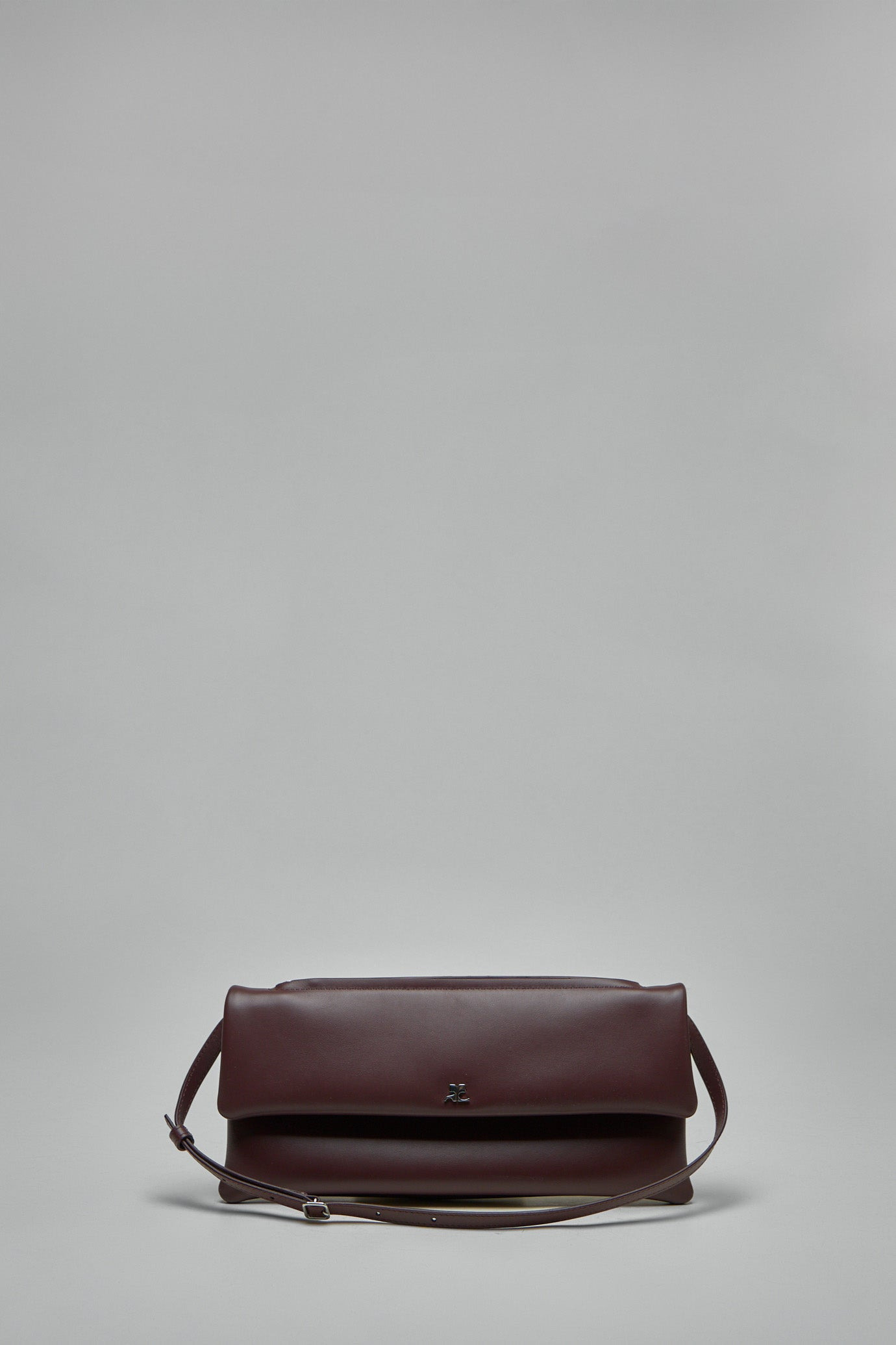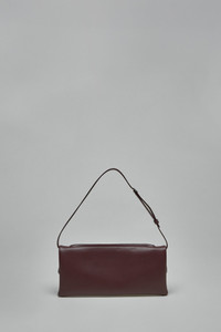 Shoulder bag in smooth burgundy leather with a folded flap and slender adjustable strap. It offers a compact rectangular silhouette with silver-tone logo hardware and a top zip concealed beneath the flap. Materials: Smooth calf leather Color: 4010 burgundy SKU: 152744 Brand style: 425GSA202CR0027