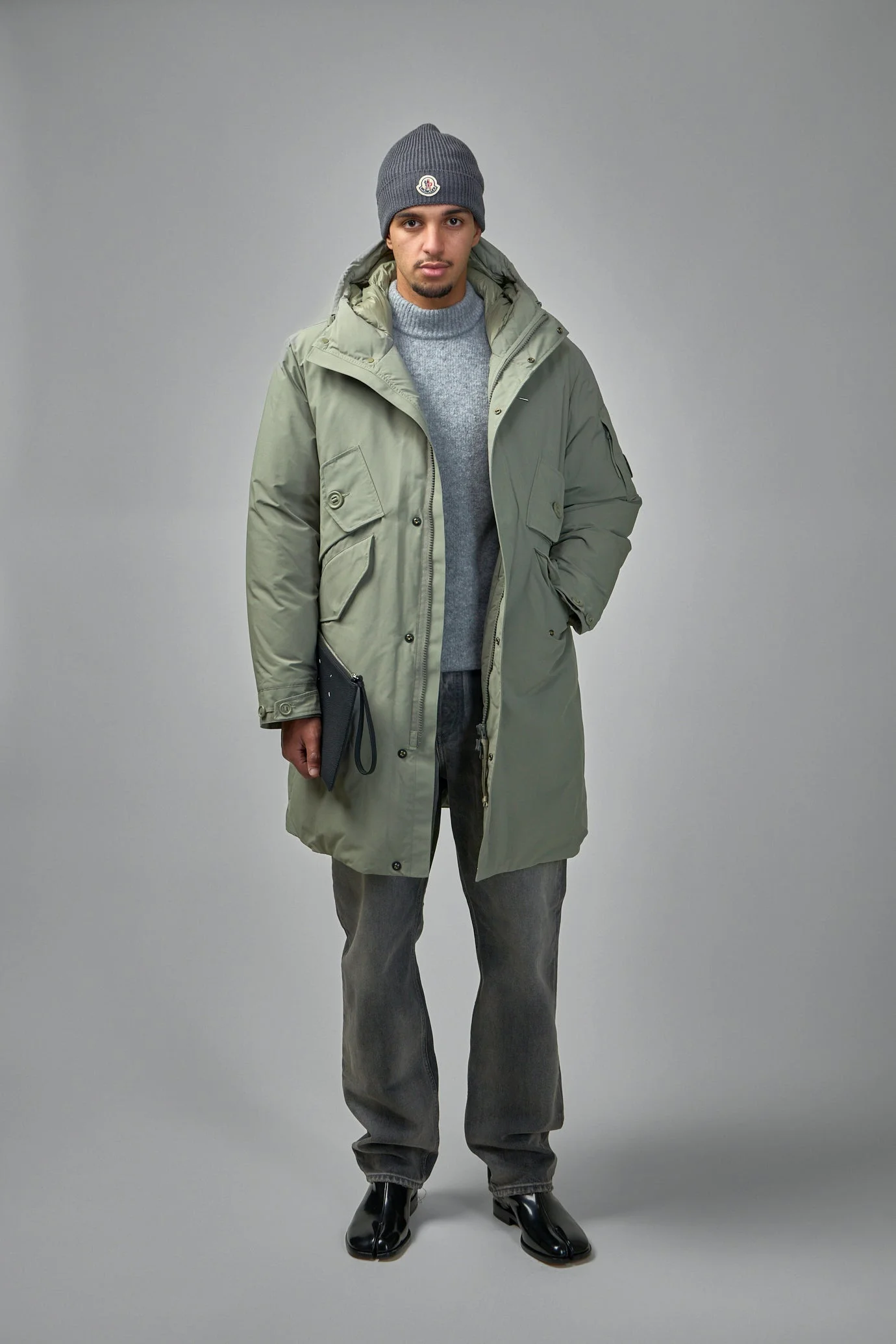 A down coat featuring a long silhouette and a padded hood. It is equipped with two large front pockets and buttoned cuffs. Materials: 100% Nylon Color: total eclipse SKU: 152020 Brand style: 19CMOW197A110419A Size and Fit The model is 1.89m (6.2ft) and wears a size L. The item has a looser cut but is not necessarily oversized. It’s intended for a comfortable and easy wear.