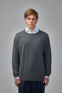 Sweater in a mid-grey shade with a crew neckline and long sleeves. Lightweight knit with ribbed cuffs and hem, finished in a relaxed straight silhouette. Materials: 100% Cotton Color: grey SKU: 152160 Brand style: 252-021204-2704-03060 Size and Fit The model is 1.86m (6.1ft) and wears a size M. The item has a looser cut but is not necessarily oversized. It’s intended for a comfortable and easy wear.