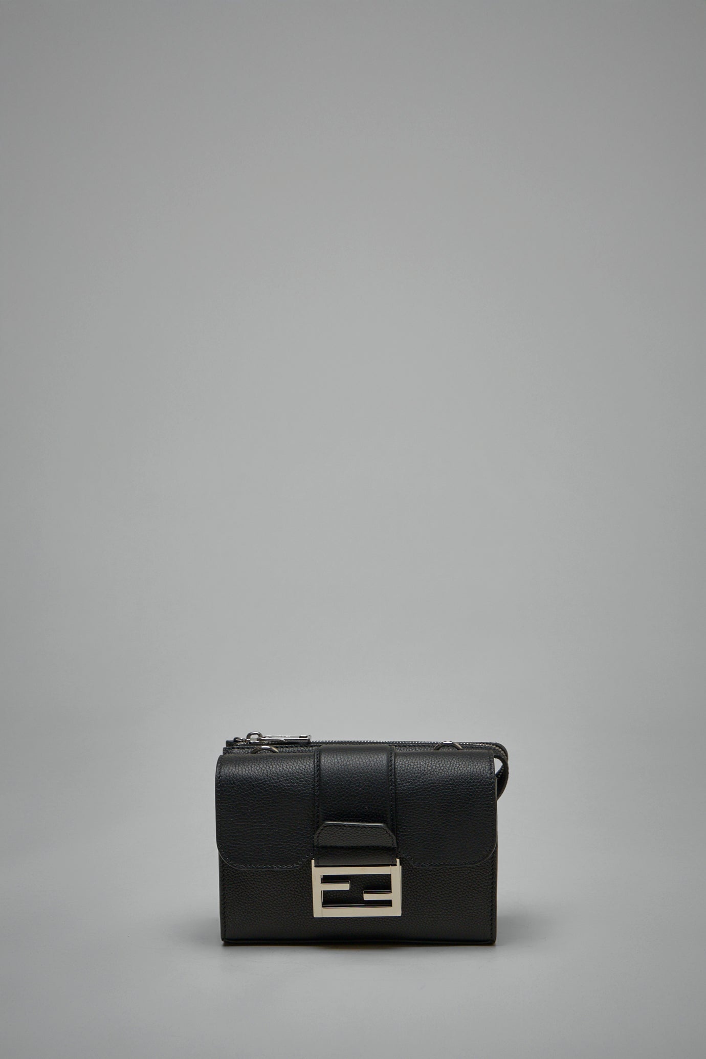 - two compartments - square flap - FF magnetic clasp - adjustable strap - 14 x 8 x 19 cm Materials: 100% leather Color: black SKU: 148962 Brand style: 7VA649 APDR F0GXN
