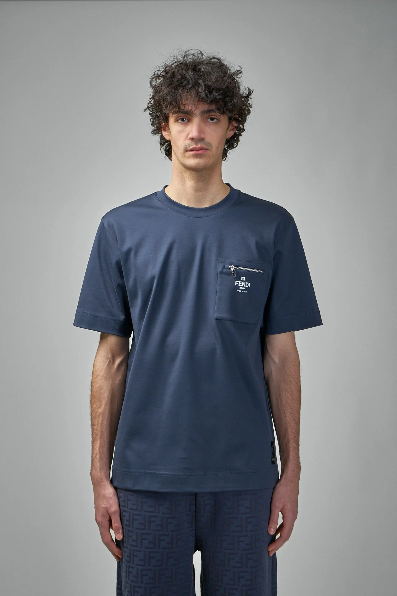 - round neck - zip pocket with logo print - short sleeves Materials: 100% cotton Color: navy SKU: 148981 Brand style: FY0936 ARYR F0QB0 Size and Fit The model is 1.89m (6.2ft) and wears a size M. The item has a looser cut but is not necessarily oversized. It’s intended for a comfortable and easy wear.