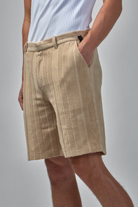 Shorts in beige terry-cloth featuring vertical raised stripes and tonal logo motifs. Visible elements include belt loops, side pockets and a knee-length cut for a relaxed silhouette. Materials: 100% Cotton Color: savana SKU: 150513 Brand style: FB0472AV0OF0UAT