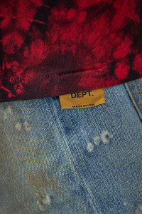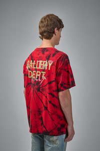 Vibrant tie-dye pattern with an oversized fit, providing a bold and casual look. Front features a large skull graphic, while the back showcases glittery text for an eye-catching effect. Materials: 100% Cotton Color: red tie dye SKU: 151823 Brand style: ETD-10247 Size and Fit The model is 1.86m (6.1ft) and wears a size L. The item has a looser cut but is not necessarily oversized. It’s intended for a comfortable and easy wear.