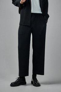 Straight pants featuring a pinstripe pattern and a relaxed fit. The pants have a slightly cropped length, making them versatile for various styles. Materials: 100% Polyester Color: black SKU: 152770 Brand style: HP58JF104 Size and Fit The model is 1.89m (6.2ft) and wears a size 3.