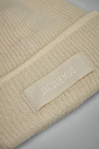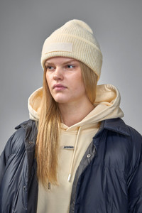 Chunky ribbed knit with a classic cuff design, offering warmth and style. The neutral tone and simplistic logo patch add to its versatility and contemporary appeal. Materials: 48% Alpaca, 33% Polyamide, 19% Wool Color: off white SKU: 152500 Brand style: 24hacu006666ak00227