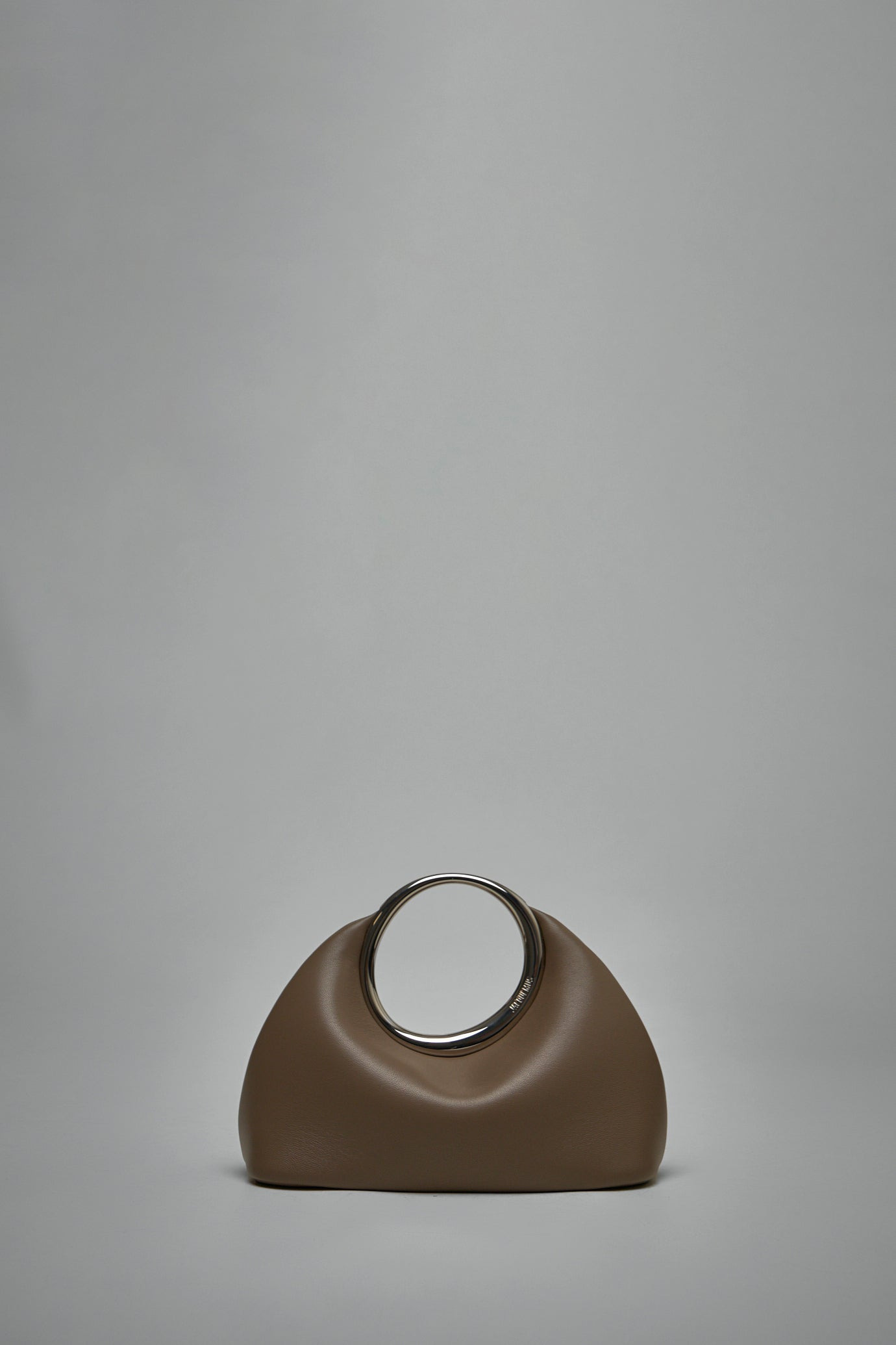 Smooth, minimalist design with a sleek, modern silhouette. The circular metal handle adds an elegant touch, creating a distinctive look. Ideal for both casual and formal settings, offering understated sophistication. Materials: 100% Leather Color: taupe SKU: 152492 Brand style: 24EBAW00395AC27L14 193
