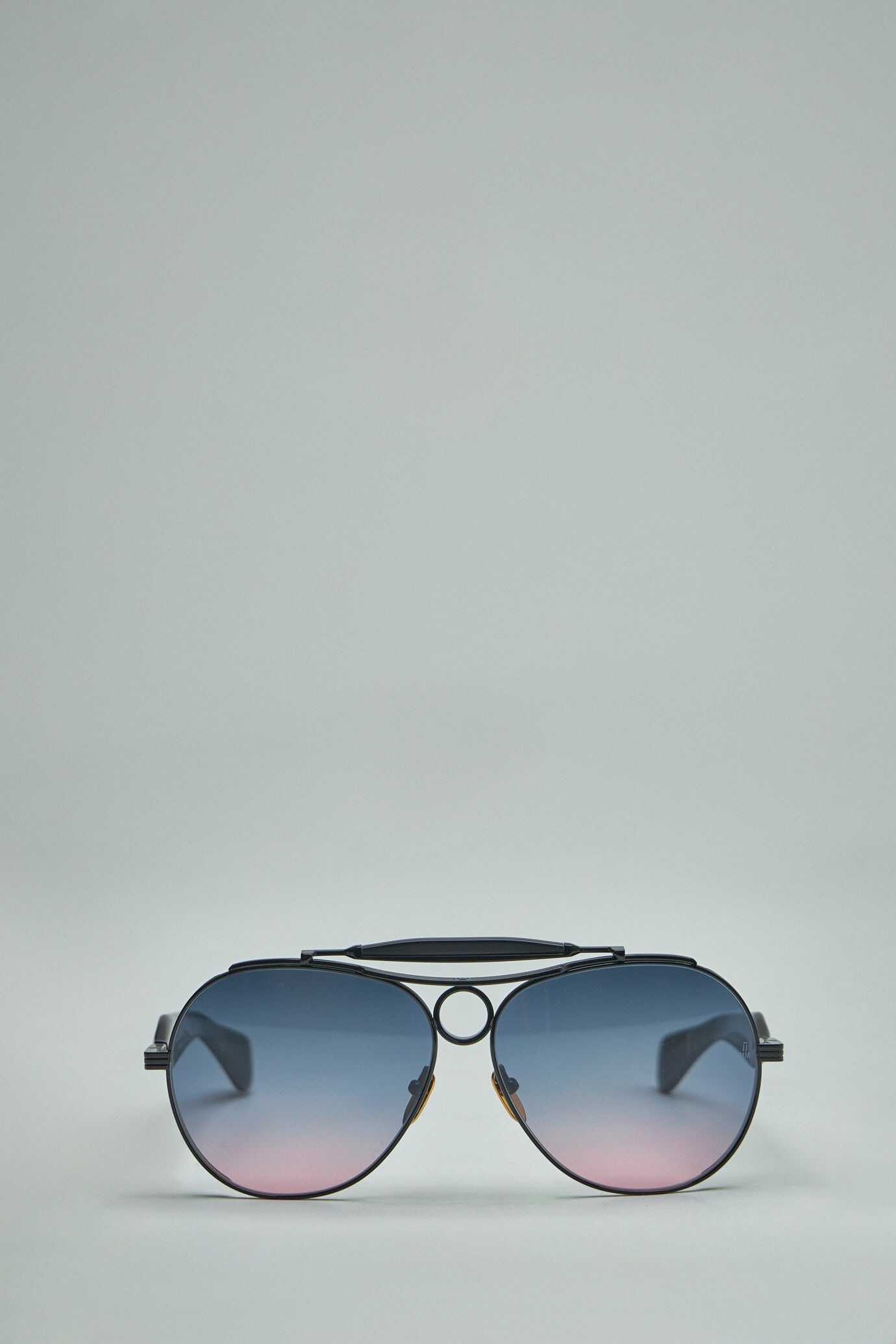 Iconic Cos-inspired shooter-style glasses from the Titanium Series featuring an acetate-bar brow accent as well as sculptural acetate temples. Materials: 100% titanium Color: dark sunset black Made in Japan SKU: 141890 Brand style: JMMASP-88