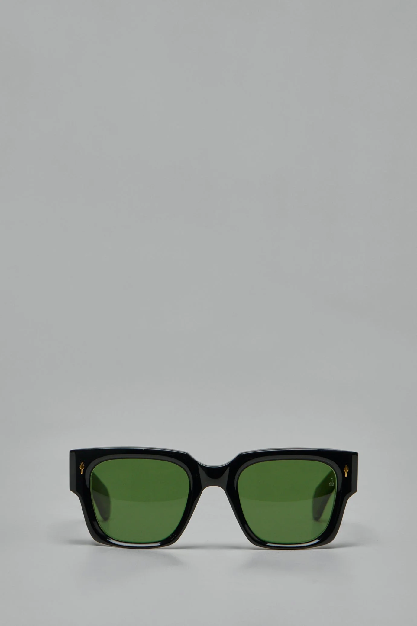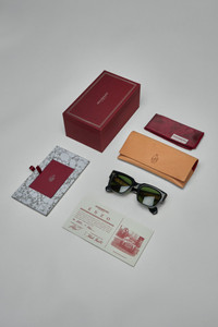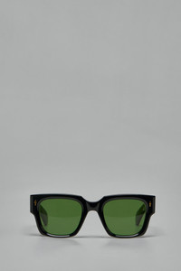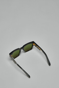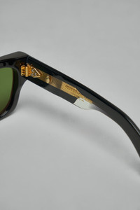 Sunglasses featuring a sleek black frame with green-tinted lenses. Gold-toned detailing is visible on the temples, adding a subtle touch of luxury. Materials: 100% Titanium, 100% Acetate Color: dark orange gradient cr39 SKU: 154377 Brand style: ENZO