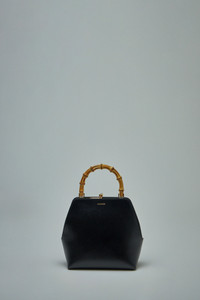 - bamboo top handle - square shape - clutch closure - inner zipped pocket - sleek metal frame detail - nappa lining - foil embossed Jil Sander logo Materials: 100% calf leather Color: black Made in Italy SKU: 146104 Brand style: J0WD0021 P4866 001 Size and Fit w 18 cm x h 20 cm x d 9 cm