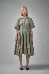- fully pleated - short sleeves - mid-length Materials: 100% polyester Color: khaki green SKU: 148942 Brand style: J02CT0493 J70005 317 Size and Fit The model is 1.80m (5.9ft) and wears a size 36. The item has a looser cut but is not necessarily oversized. It’s intended for a comfortable and easy wear.