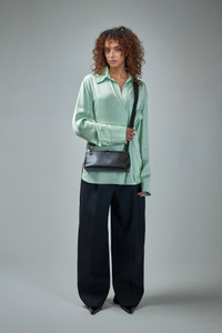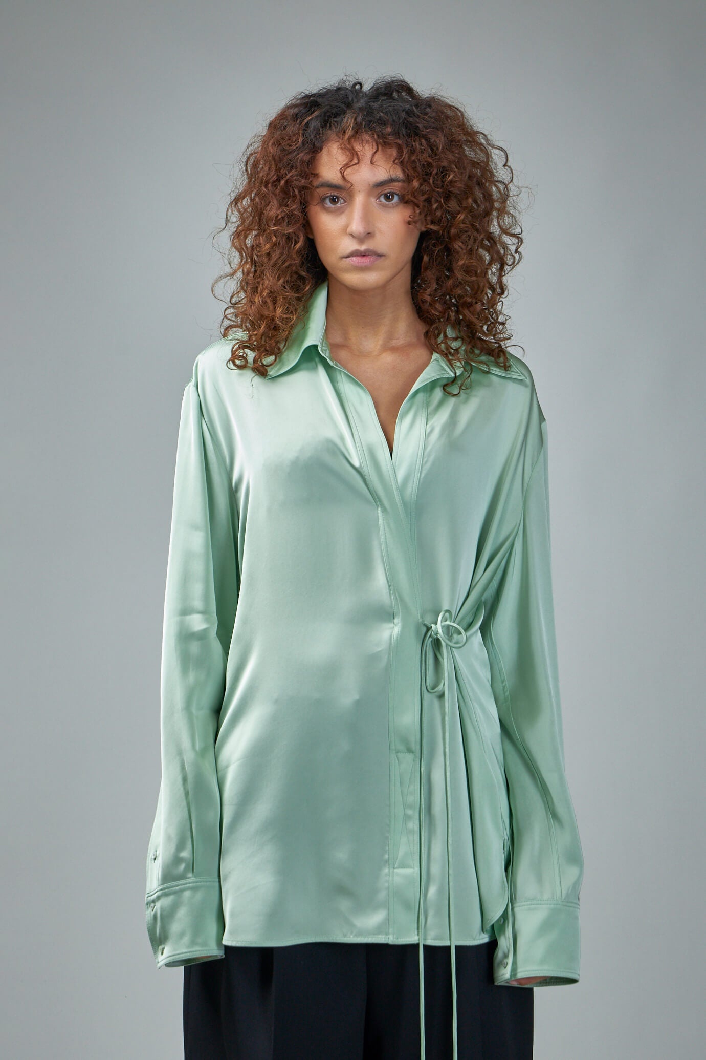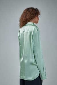 The Jil Sander shirt features a classic collar, adjustable belted waist, and secure button closure. Benefit from the perfect fit and timeless style of this versatile shirt. Materials: 100% viscose Color: mint green Made in Italy SKU: 141409 Brand style: J02DL0136 J65022 335 Size and Fit Yasmine wears a size 40. Yasmine is 1.74m and normally wears a size XS in tops, a size 34 in bottoms, and a size 25 in denim.