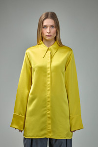 - pointed collar - button closure - buttoned cuffs Materials: 56% cupro, 44% viscose Color: yellow Made in Italy SKU: 146109 Brand style: J02DL0208 J65219 724 Size and Fit The model is 1.76m (5.8ft) and wears a size 40. The item has a looser cut but is not necessarily oversized. It’s intended for a comfortable and easy wear.