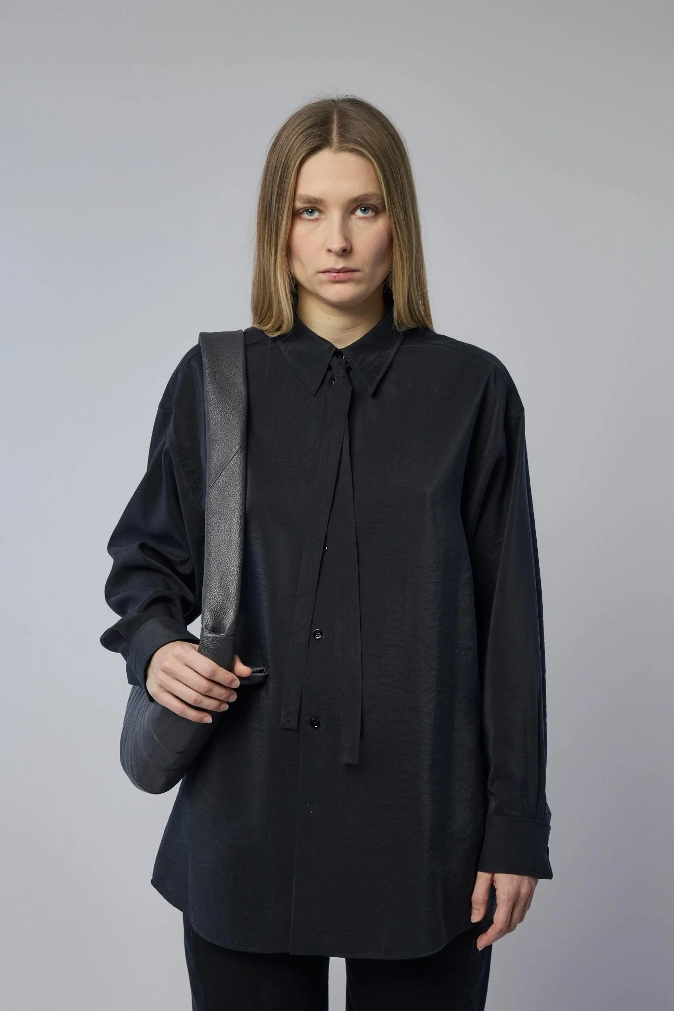 SKU: 154991 Brand style: SH1282 LF1308 Shirt with a classic structure and subtle gloss, featuring a tie-neck detail and button closure. The garment's relaxed fit makes it suitable for various occasions. - Long sleeves - Button-up front - Tie-neck detail - Shiny finish - Relaxed fit - Classic collar - Straight hemline Materials: 76% Silk, 24% Polyamide Color: Black Bk999 The model is 1.77m (5.8ft) and wears a size FR38. The item fits as expected according to standard sizing. Order your usual size.