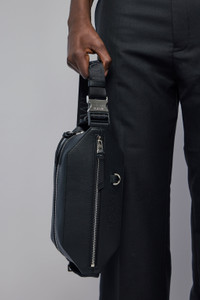 SKU: 153508 Crossbody bag in sleek black leather, designed for both style and utility. It features a bold logo on the adjustable strap and a spacious zippered compartment for essentials. - Black leather material - Zippered main compartment - Adjustable strap with logo - D-ring detail on front - Sleek, modern design Materials: 100% Leather Color: Black