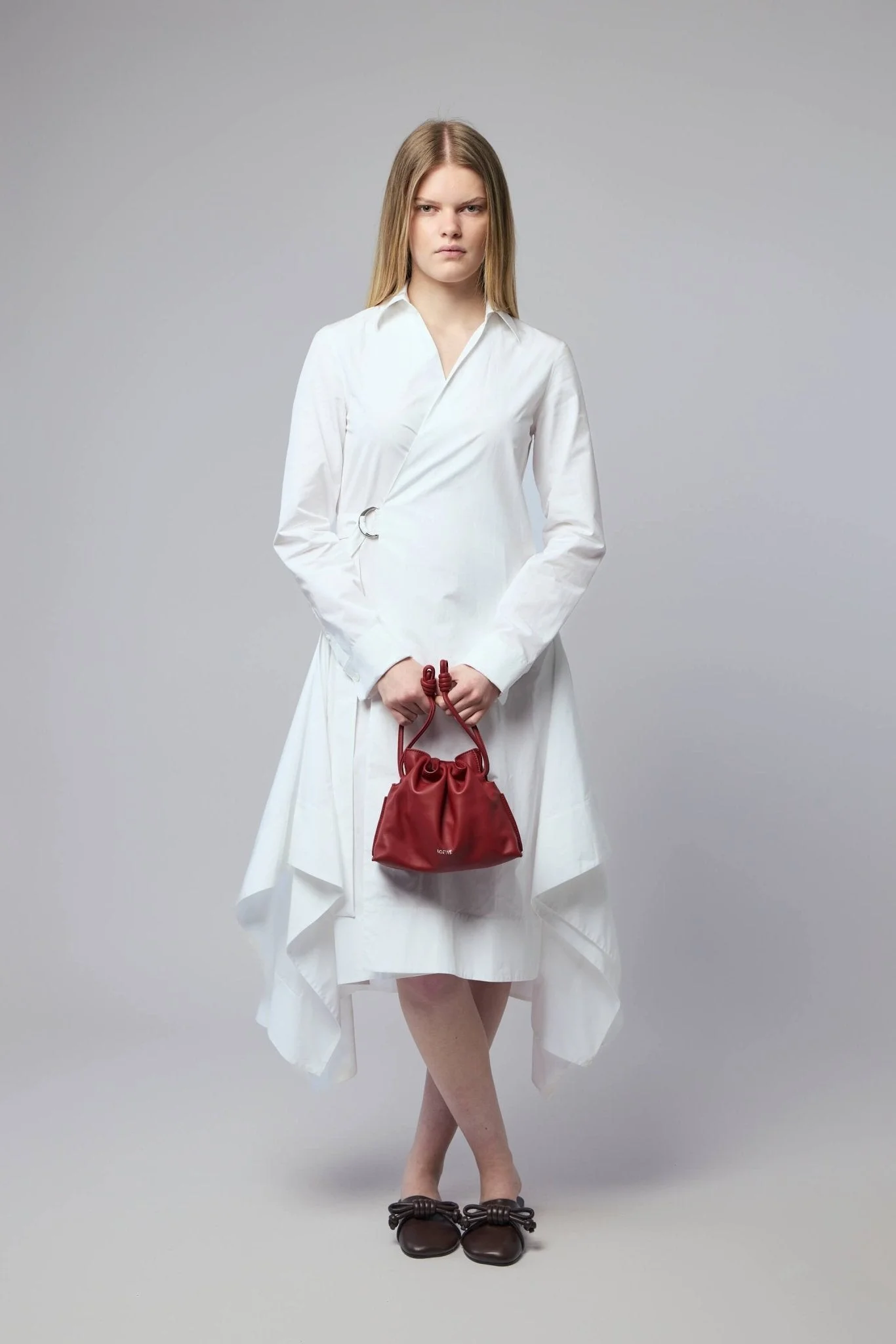 SKU: 153873 Brand style: S359Y09XJL Midi Dress with a unique asymmetric hemline, featuring a wrap design with a metal ring detail. The dress offers a sophisticated look ideal for formal occasions. - Long sleeves - Asymmetric hemline - Wrap design - Metal ring detail - Collared neckline Materials: 100% Cotton Color: White The model is 1.79m (5.9ft) and wears a size FR38. The item fits as expected according to standard sizing. Order your usual size.