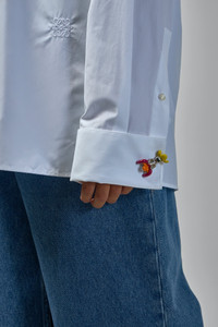 Shirt in crisp white with a relaxed, oversized silhouette. It features a pointed spread collar and a full button-front fastening. Materials: 100% Cotton Color: white SKU: 152723 Brand style: S540Y05XCD