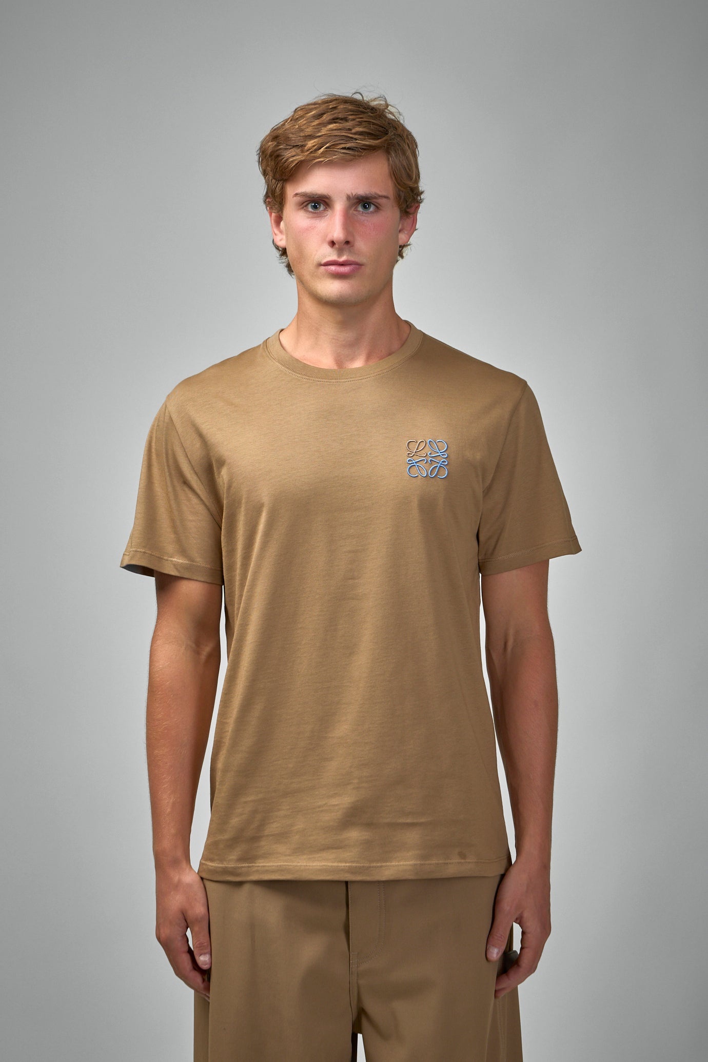 - regular fit, regular length - crew neck - ribbed collar - two-tone Anagram embroidery placed on the chest Materials: 100% cotton Color: camel SKU: 151874 Brand style: H526Y22X75 3150 Size and Fit The model is 1.86m (6.1ft) and wears a size M. The item fits as expected according to standard sizing. Order your usual size.