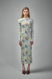 - slim fit, long length - round neck - side slit - anagram embroidery placed at the back Materials: 55% cotton, 45% silk Color: multicolor SKU: 150661 Brand style: S540Y51X37 9990 Size and Fit The model is 1.76m (5.8ft) and wears a size S. Cut close to the body, emphasizing the silhouette. Recommended if you prefer a more form-fitting style.