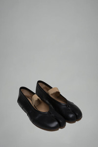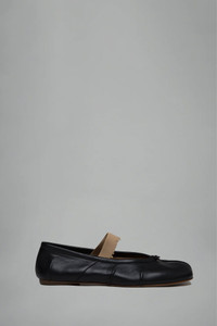 Split-toe flats with a minimalist and unique silhouette, offering a modern twist on traditional footwear. The smooth leather finish pairs with a contrasting elastic strap for added detail, creating an eye-catching design that blends style and comfort. Materials: 100% lamb leather for upper, lining, and inside; sole is 100% calf leather; contrast is 100% rubber. Color: black SKU: 151504 Brand style: S39WZ0104-P6853-HA334 Size and Fit The model is 1.89m (6.2ft) and wears a size L. The item fits as expected according to standard sizing. Order your usual size.