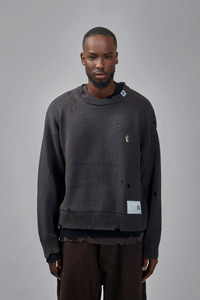Sweater with a distressed, lived-in look and an oversized relaxed fit. It features a ribbed crewneck, layered hem details and a small embroidered motif on the chest. Materials: 100% Cotton Color: black SKU: 152389 Brand style: A15SW532 Size and Fit The model is 1.89m (6.2ft) and wears a size 46. The item has a looser cut but is not necessarily oversized. It’s intended for a comfortable and easy wear.