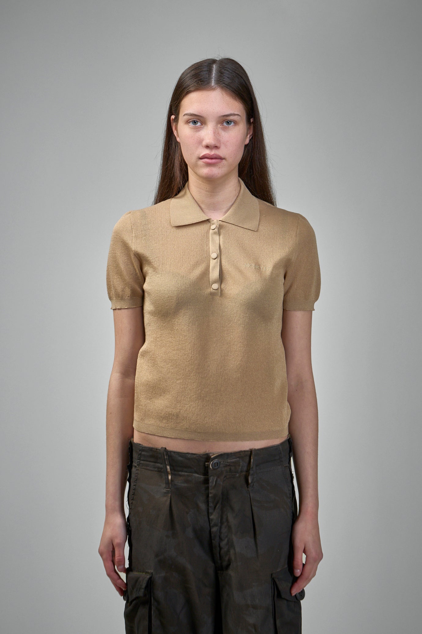 - collar - button closure - small logo Materials: 100% cotton Color: beige SKU: 149707 Brand style: K10939A00004 M6440 24D Size and Fit The model is 1.76m (5.8ft) and wears a size S. Cut close to the body, emphasizing the silhouette. Recommended if you prefer a more form-fitting style.