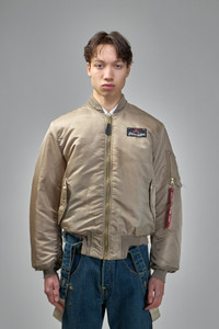 Bomber jacket featuring a classic fit with ribbed cuffs and hem. It has a shiny beige exterior complemented by a functional sleeve pocket and a bold tag detail. Materials: 65% Polyester, 35% Cotton Color: black SKU: 153270 Brand style: PT08OW160USSD