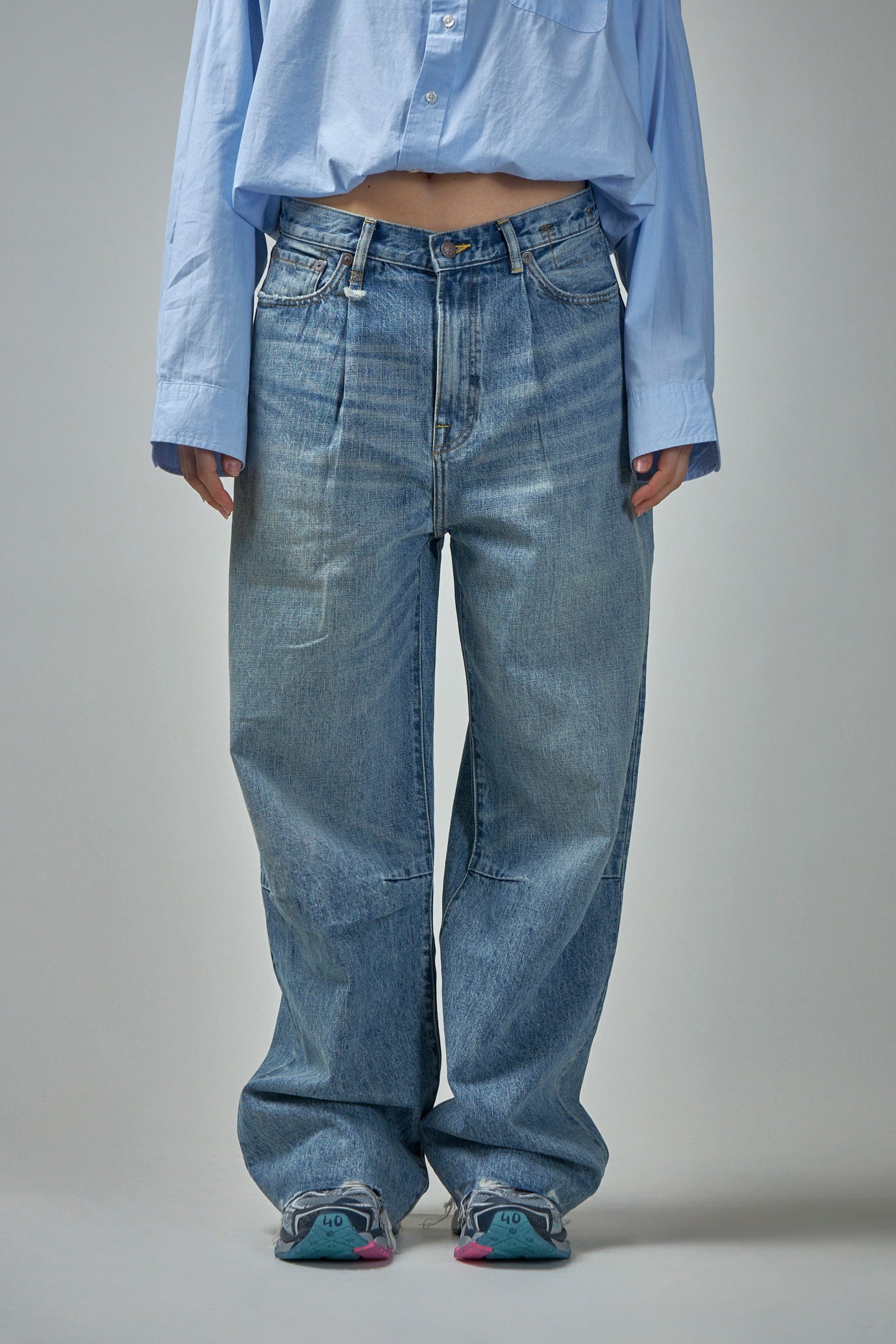 - button closure - 5-pocket design - washed denim - unfinshed edges Materials: 100% cotton Color: lena blue SKU: 148595 Brand style: R13WD146D149C Size and Fit The model is 1.76m (5.8ft) and wears a size 28. The item has a looser cut but is not necessarily oversized. It’s intended for a comfortable and easy wear.