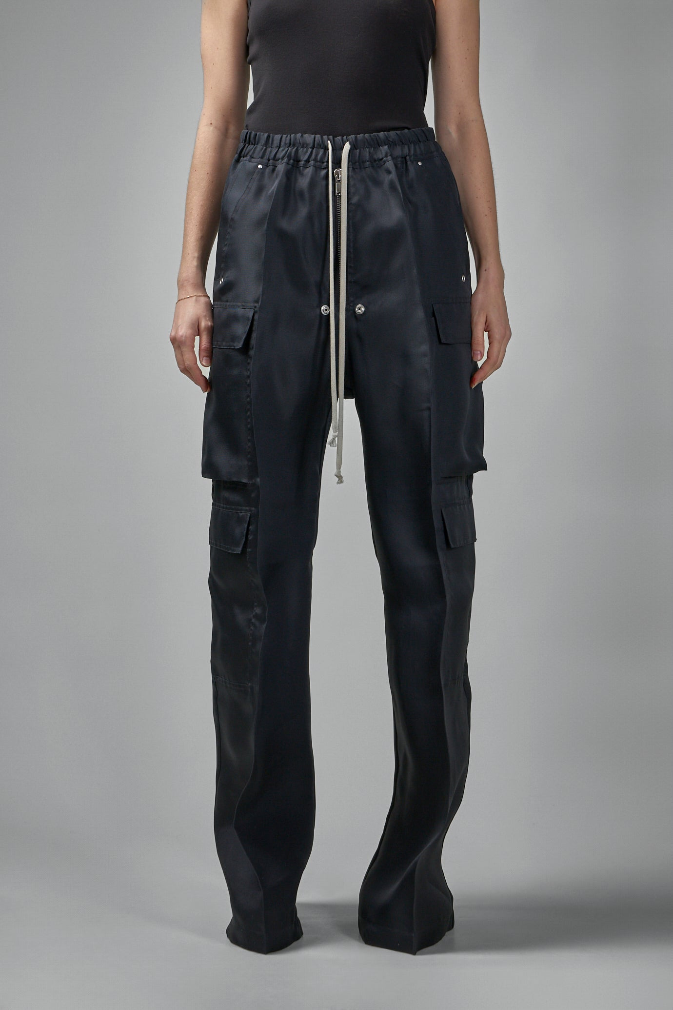 - elastic waist with drawstrings - cargo pockets - side pockets - zip detailing - wide leg Materials: 100% silk Color: black SKU: 148090 Brand style: RP01E7327 SG 09 Size and Fit The model is 1.76m (5.8ft) and wears a size 42. The item fits as expected according to standard sizing. Order your usual size.
