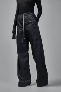 Wide-leg pants in glossy black nylon with an elasticated waistband and long contrast drawstring. Features include an exposed center zipper, snap-button details at the front, slanted side pockets with rivets, and back flap pockets with snaps. Materials: 100% Cotton Color: black SKU: 152581 Brand style: DS02E7327-NP-09 Size and Fit The model is 1.76m (5.8ft) and wears a size XS. The item has a looser cut but is not necessarily oversized. It’s intended for a comfortable and easy wear.