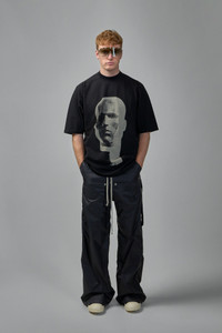 T-shirt with a boxy, oversized cut rendered in solid black and finished with a ribbed crew neckline. The front features a large monochrome grey sculpted-head graphic centered on the torso; sleeves fall to the elbows and shoulder seams appear dropped. Materials: 100% Cotton Color: black pearl SKU: 152601 Brand style: DU02E7274RIGEP1 Size and Fit The model is 1.89m (6.2ft) and wears a size S. The item has a looser cut but is not necessarily oversized. It’s intended for a comfortable and easy wear.