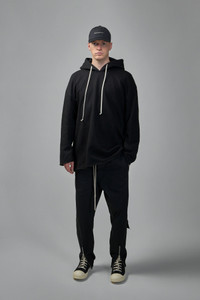 Hoodie with an oversized pullover silhouette and an attached hood. It features long contrasting cream drawstrings and raw-cut hems with dropped shoulders for a relaxed look. Materials: 100% Cotton Color: black SKU: 152598 Brand style: DU02E7280 FP 09 Size and Fit The model is 1.89m (6.2ft) and wears a size S. The item has a looser cut but is not necessarily oversized. It’s intended for a comfortable and easy wear.
