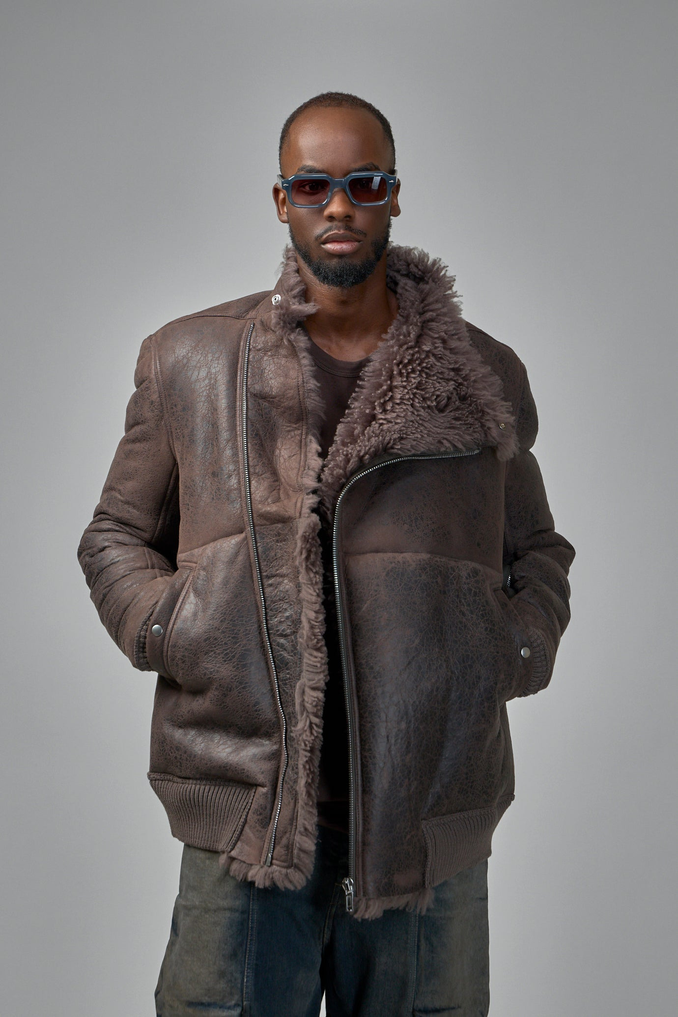 Hollywood Flight Shearling Real Fur Bomber Jacket