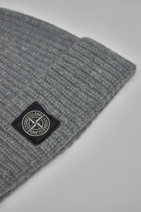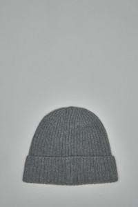 Ribbed knit beanie with a fold-over cuff and a square branded patch on the front. It features a heathered grey, fuzzy rib texture and a rounded crown silhouette. Materials: 100% Wool Color: cement melange SKU: 151286 Brand style: k2s15-n100012-s00b4-v0m6b