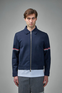 - front zip closure - ribbed collar, cuffs and hem - sleeve stripe details Materials: 98% cotton, 1% polyamide, 1% elastane Color: navy SKU: 148023 Brand style: MKJ133A-Y3004 415 Size and Fit The model is 1.86m (6.1ft) and wears a size 2. The item fits as expected according to standard sizing. Order your usual size.