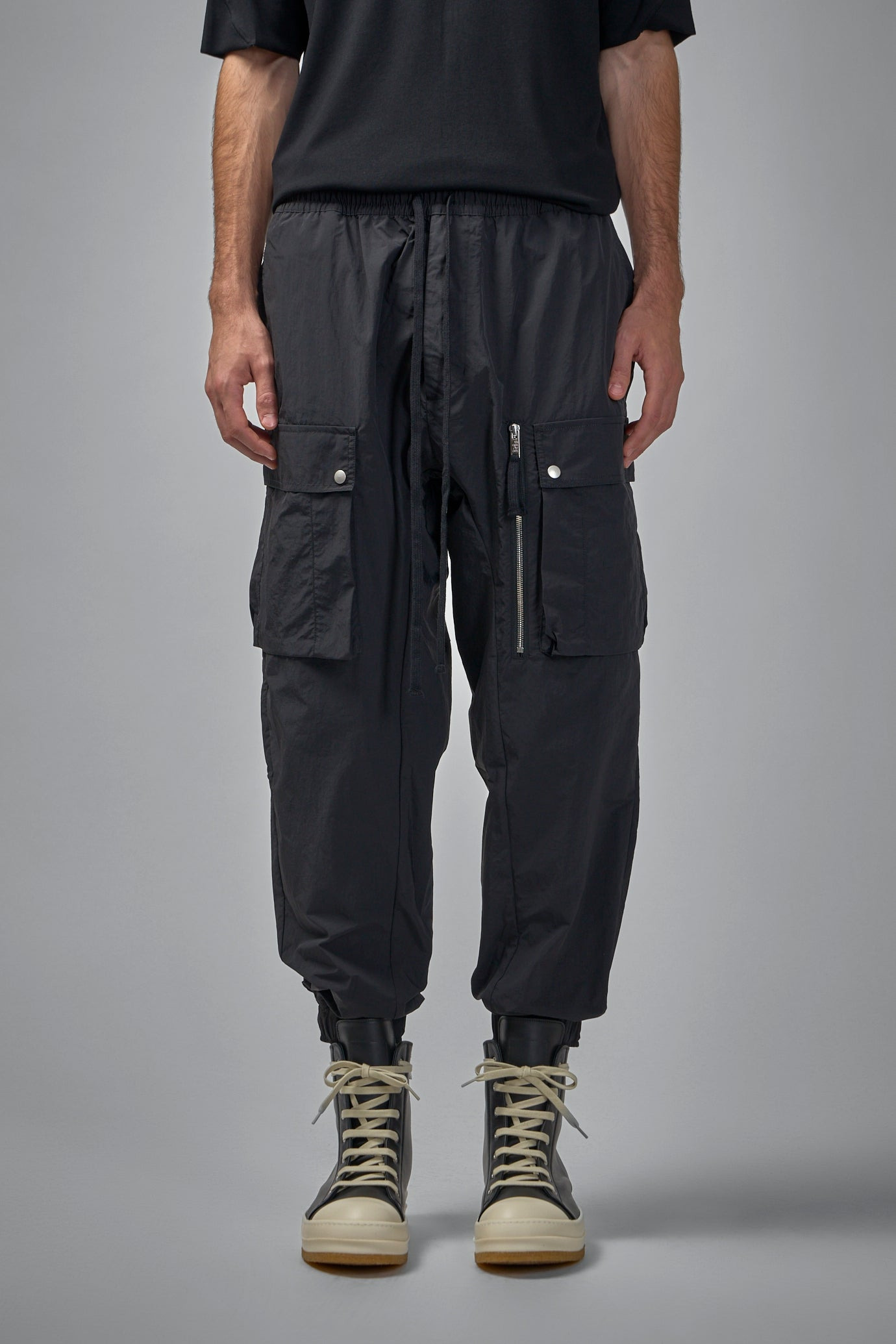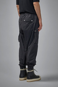 - elastic waist - cargo pockets - elastic cuffs Materials: 100% nylon Color: black SKU: 151429 Brand style: M P 26 Size and Fit The model is 1.89m (6.2ft) and wears a size L. The item has a looser cut but is not necessarily oversized. It’s intended for a comfortable and easy wear.