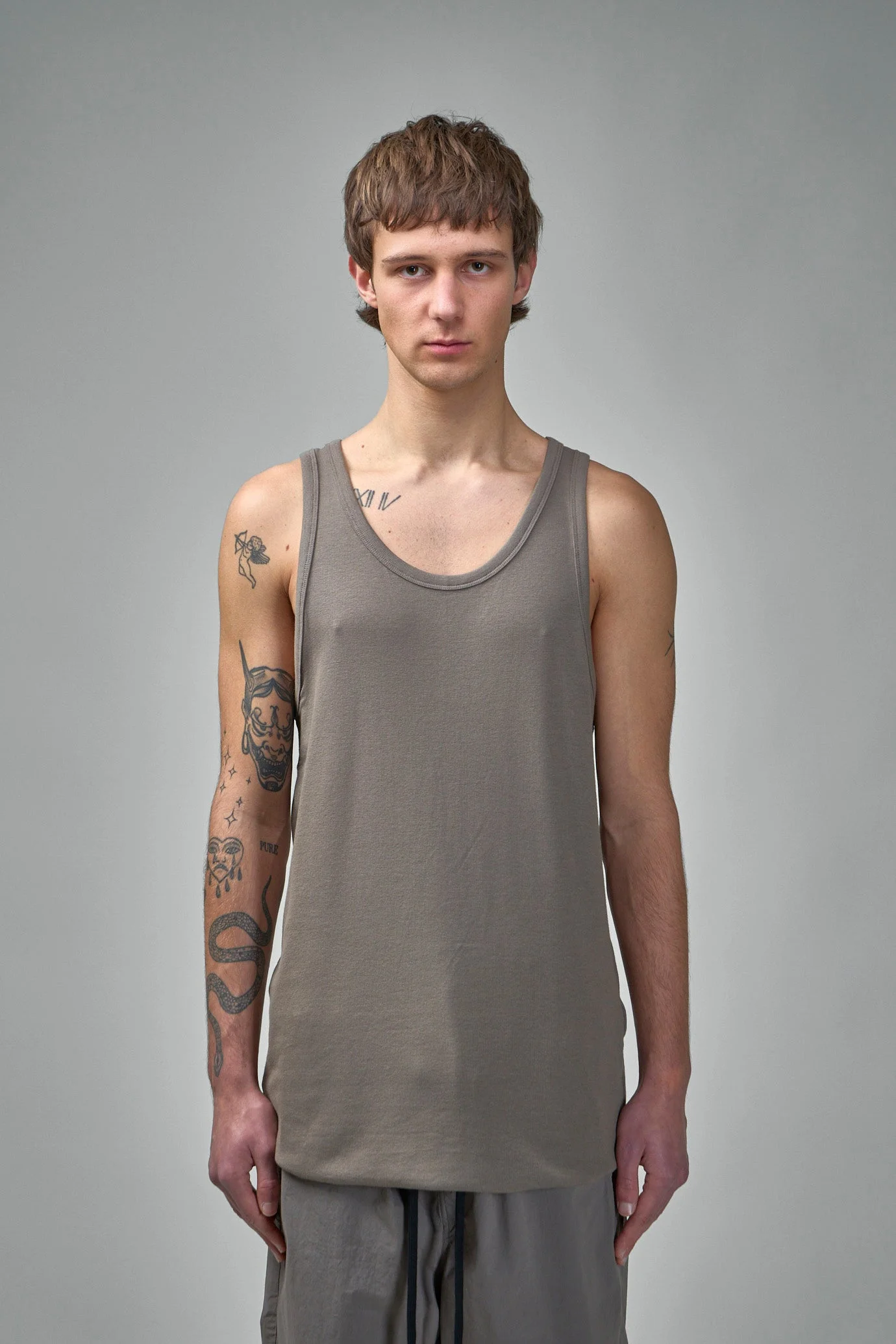 - long tank top - slim fit - raw cut hem - contrast piping detail - fine rib material Materials: 95% cotton, 5% elastane Color: rock SKU: 148753 Brand style: M TS 854-0-1 163 Size and Fit The model is 1.86m (6.1ft) and wears a size M. The item fits as expected according to standard sizing. Order your usual size.