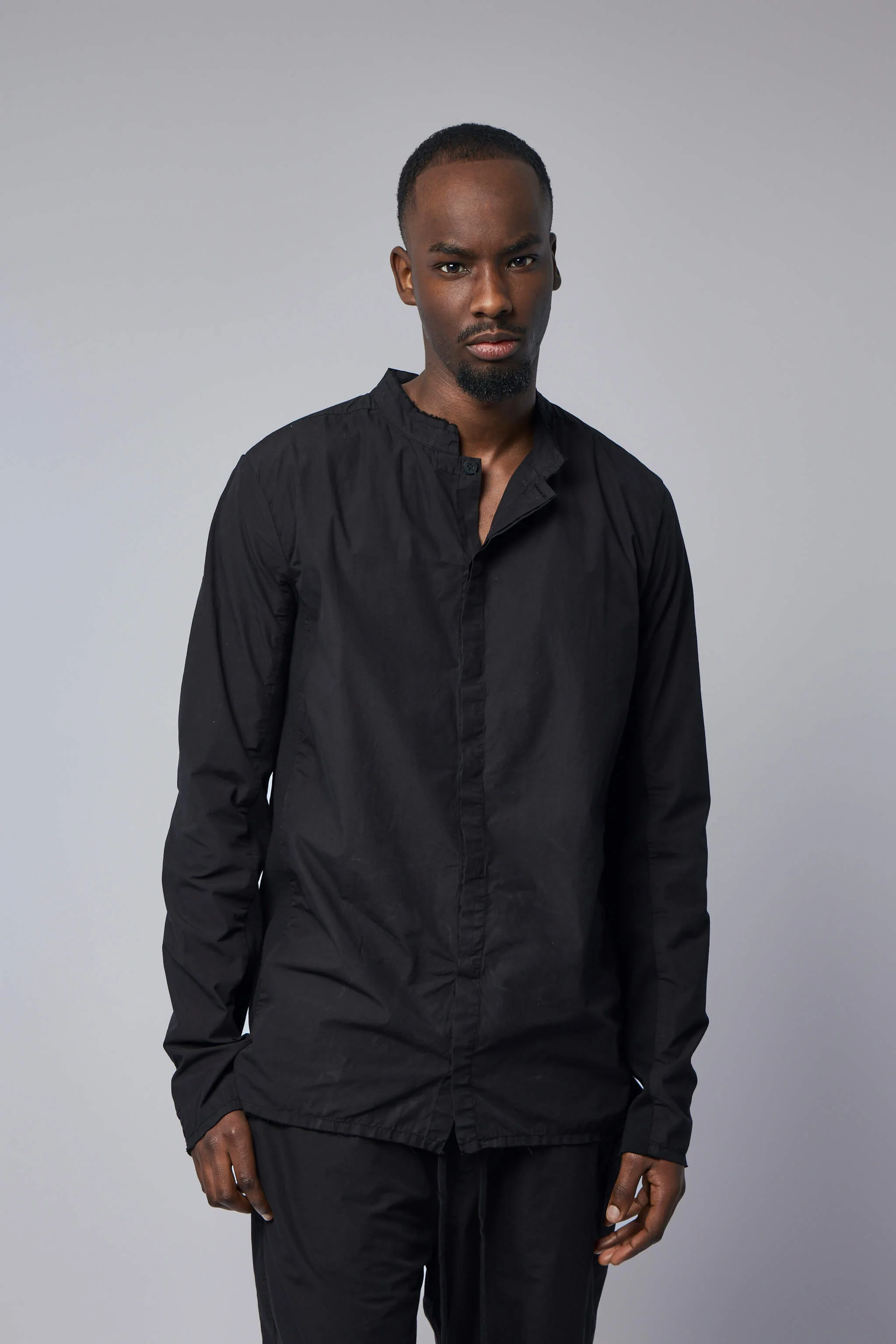 SKU: 155278 Brand style: M H 178 Blouse with a mandarin collar and a sleek, button-front design. This long-sleeved blouse showcases a minimalist style that's perfect for versatile wear. - Mandarin collar - Long sleeves - Button-front closure - Solid color - Straight hem Materials: Shell: 100% Organic Cotton Inserts: 100% Cotton Color: black The model is 1.89m (6.2ft) and wears a size L. The item fits as expected according to standard sizing. Order your usual size.