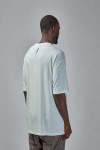 T-shirt with an oversized, longline silhouette in an off-white shade. It features a crew neckline, dropped shoulders and elbow-length sleeves for a relaxed drape. A small vertical black stitch detail sits at the upper back. Materials: Cotton, modal Color: cream SKU: 151711 Brand style: M TS 901