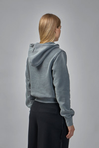 Streamlined build featuring a relaxed fit with a cropped silhouette, providing a modern and casual look. The soft texture enhances comfort, while the hood adds a stylish element. A front pocket offers practicality without compromising the design. Color: used grey SKU: 151536 Brand style: WS239