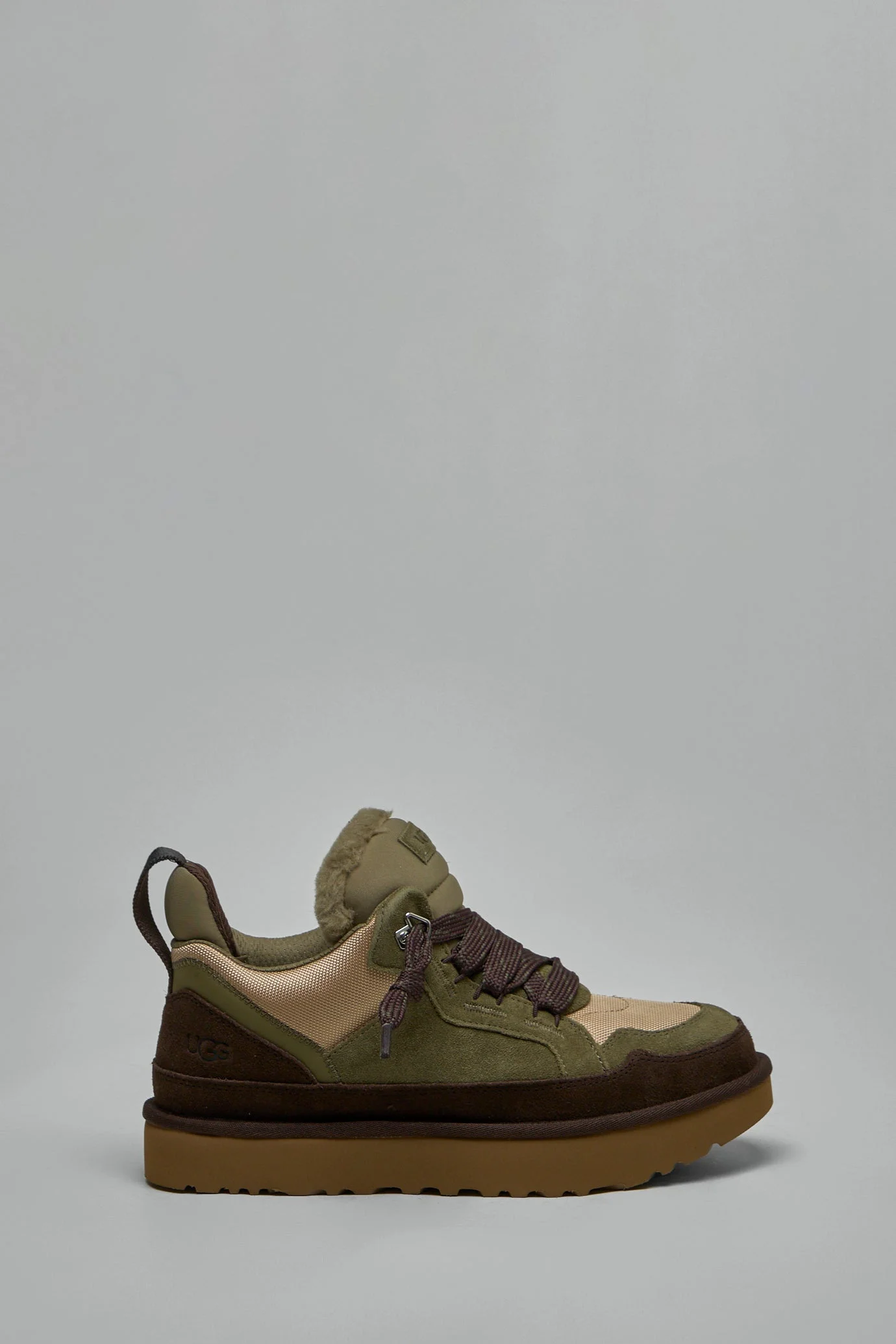 Stylish low top sneakers with a rugged suede and synthetic design, offering both comfort and durability. The chunky sole and padded, plush interior lining provide extra support for everyday wear. Materials: Upper: Suede, Textile made from 100% recycled nylon fibers; Lining: Polyester mesh made from 55% coffee charcoal modified polyester and 45% regular polyester, 10mm UGGplush™ 60% upcycled wool, 40% TENCEL™ Lyocell; Insole: 10mm UGGplush™ 60% upcycled wool, 40% TENCEL™ Lyocell; Outsole: Sugarcane EVA; Laces: 100% UNIFI recycled polyester fibers Color: burnt olive/mustard seed SKU: 154604 Brand style: 1170750
