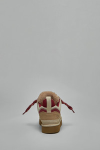 Low top sneaker with a casual and cozy design featuring a mix of materials and colors. Materials: Suede, Textile made from 100% recycled nylon fibers upper; Polyester mesh lining made from 55% coffee charcoal modified polyester and 45% regular polyester; 10mm UGGplush 60% upcycled wool, 40% lyocell lining; EVA footbed; Sugarcane EVA outsole Color: driftwood / biking red SKU: 154605 Brand style: 1170750-DWD