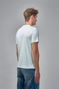 T-shirt in plain white with a classic crew neck and short sleeves. It has a small embroidered rectangular chest logo and a straight hem for a clean, casual look. Materials: 100% Cotton Color: ivory SKU: 151763 Brand style: 6V3MG10VAQ8_A03